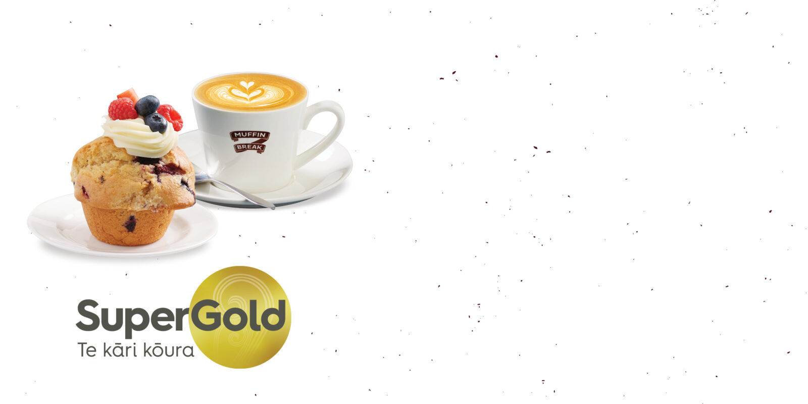 *Excludes promotional muffins, includes all other muffins and scones, while stocks last. SuperGold card must be presented when redeeming. Not valid with 4pm Fix promotion or any other offer. Additional costs apply for extra shots and alternative milks. +$1 for medium hot drink, +$2 for large hot drink. Valid 24 November 2025 – 31 January 2026.